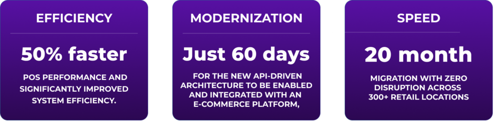 - Zero operational disruption: All 300+ retail locations remained fully operational throughout the entire 20-month migration, ensuring uninterrupted customer service and business continuity.